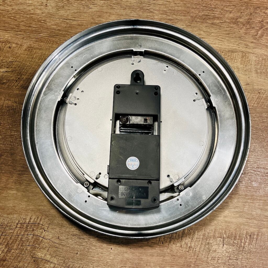 ガンメタルの立体感ある本体とネオンが目を引く壁掛け時計。