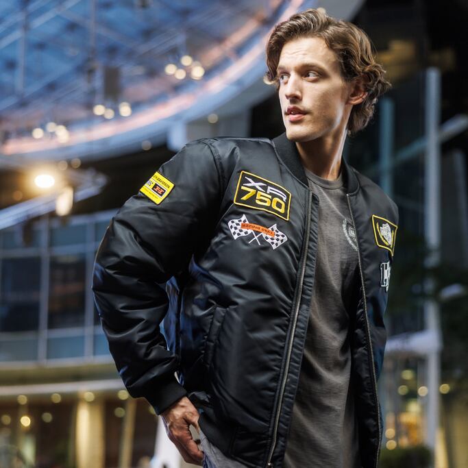 肉厚でボリュームのある素材がリッチなシルエットを作るボンバージャケット。